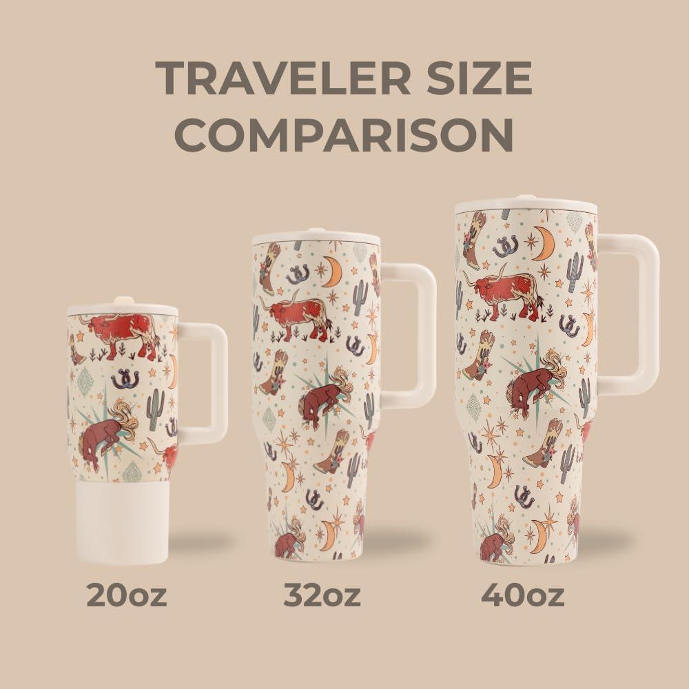HydroJug Traveler - 40 oz Water Bottle with Handle & Flip Straw - Fits in Cup Holder, Leak Resistant Tumbler-Reusable Insulated Stainless Steel & Rubber Base - Gifts for Women & Men, Alumni Red(Rodeo)