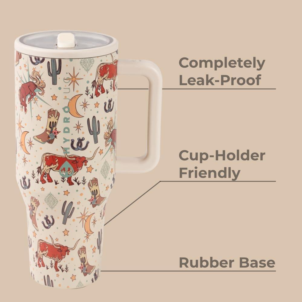 HydroJug Traveler – 40 oz Water Bottle with Handle & Flip Straw – Fits in Cup Holder, Leak Resistant Tumbler-Reusable Insulated Stainless Steel & Rubber Base – Gifts for Women & Men, Alumni Red(Rodeo)