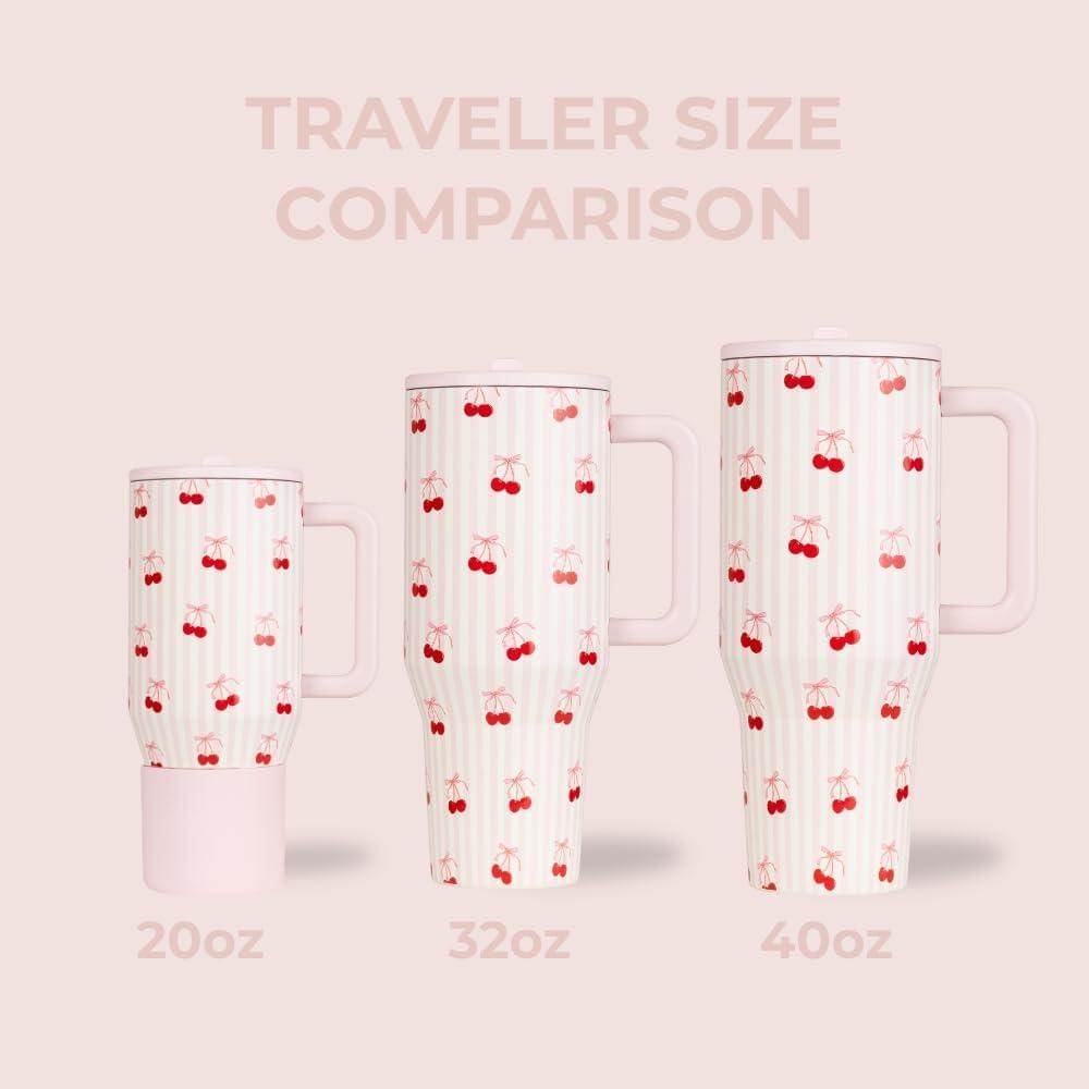 imageHydroJug Traveler  40 oz Water Bottle with Handle ampamp Flip Straw  Fits in Cup Holder Leak Resistant TumblerReusable Insulated Stainless Steel ampamp Rubber Base  Gifts for Women ampamp Men Alumni RedSweet Cherry